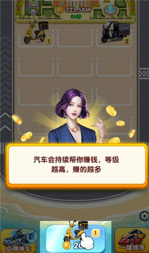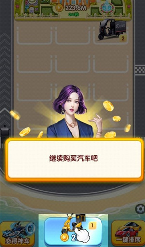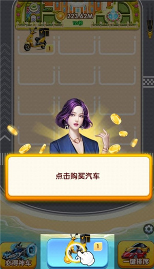 2、游戏内设置了自动合成,只需要点击下面的按钮不断生成汽车就行了。
