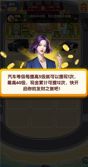 5、汽车等级每提升5级就可以提现1次,最高60级。