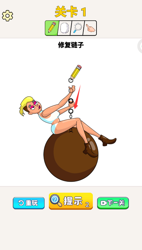 2、针对公主被抓的链子问题进行修复,通过灵活使用场景内提供的特定工具,进行相应交互操作。