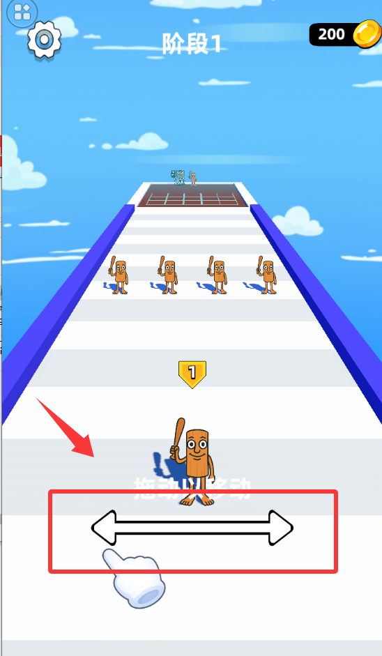 3、拖到左右就可以开始游戏,拖到左右可以控制角色移动。
