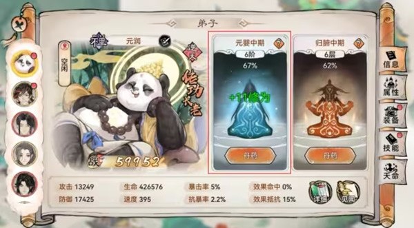 弟子消耗【修为丹】可以快速增长弟子境界修为,这是游戏中最重要的修为获取途径。