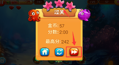 3、恭喜你过关了,点击红色框框里继续下一关。
