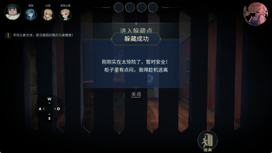 2、当抓捕者出现时优先躲柜子、桌下、阴影区,跑位用Z字形+随机转向,看到抓捕者时不要直线逃跑,利用障碍物卡视野。