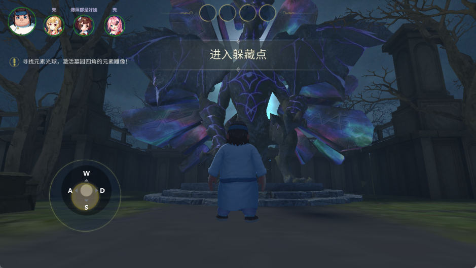 1、进入游戏快速搜集元素球,记住地图转角、柜子、阴影藏点,分散行动,不要扎堆送死。