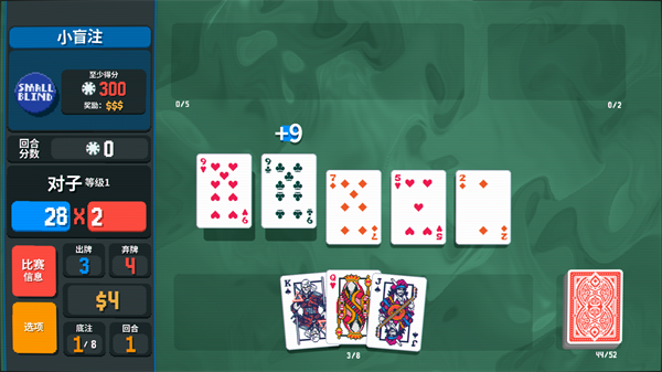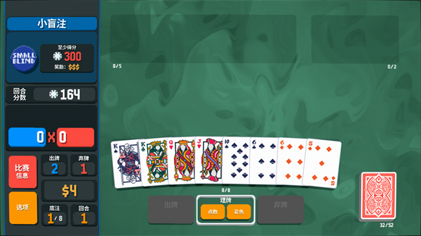 蓝分:通过凑齐特定牌型(如对子、同花)获得,仅做加法计算。