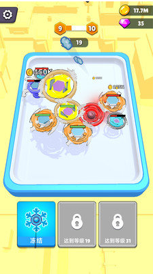 《陀螺不停转》是休闲解压的小游戏,使用金币购买陀螺,相同的两个陀螺可以合成更高级的陀螺,提升攻击力,完成攻击任务,获取丰厚的奖励!玩家点击金币购买按钮,购买陀螺,拖动两个相同的陀螺进行合成,从而获得更高级的陀螺,提升攻击力,击败对方陀螺,即可获得胜利赢得金币,收集更多高级的陀螺。