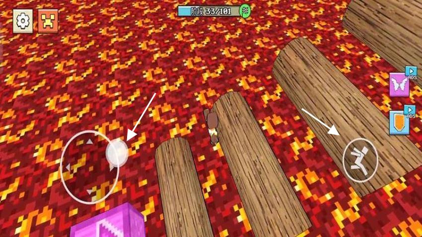 1、在布满熔岩的场景中,沿着木板稳步前行,注意躲避危险的熔岩。
