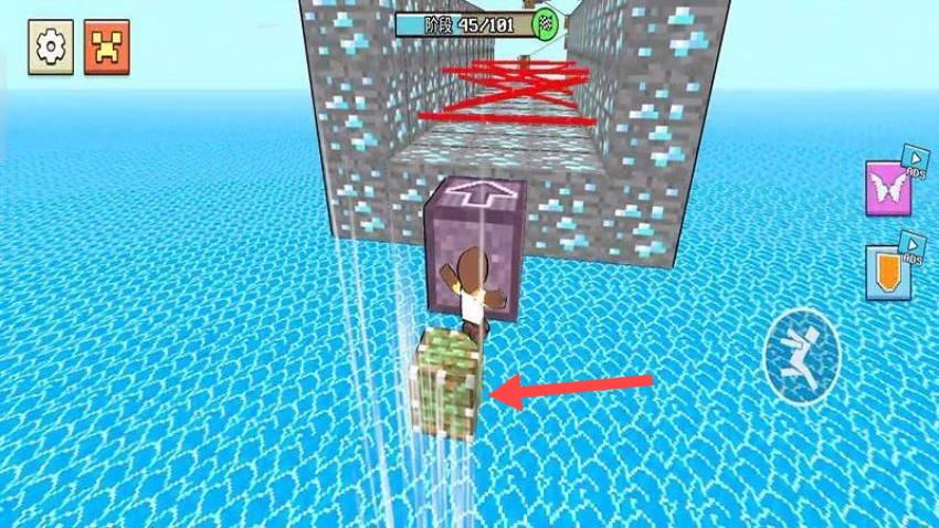 2、在水上场景里,借助场景中的道具或方块,探寻正确的前进路径。