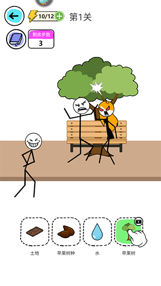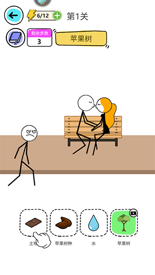 将下放的物品组合起来,变成苹果树,再用快掉下来的苹果去砸女生的脑袋,她就没有心思约会了