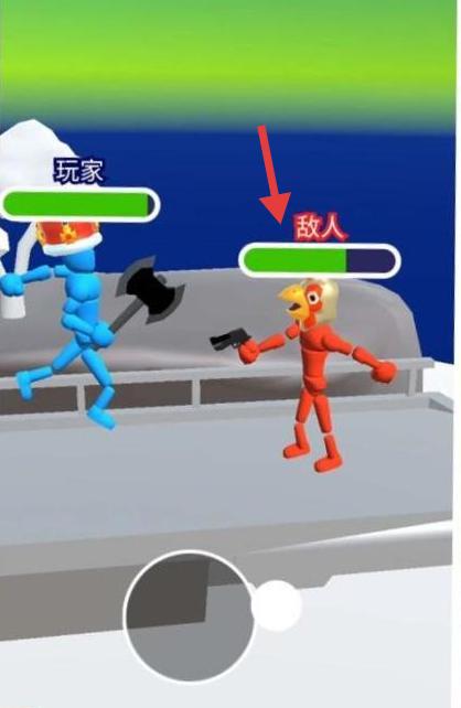 2、战斗时操控玩家(蓝色角色),用武器(如斧头)攻击敌人(红色角色),注意血条,优先击败血条少的敌人,积累战斗经验句号。