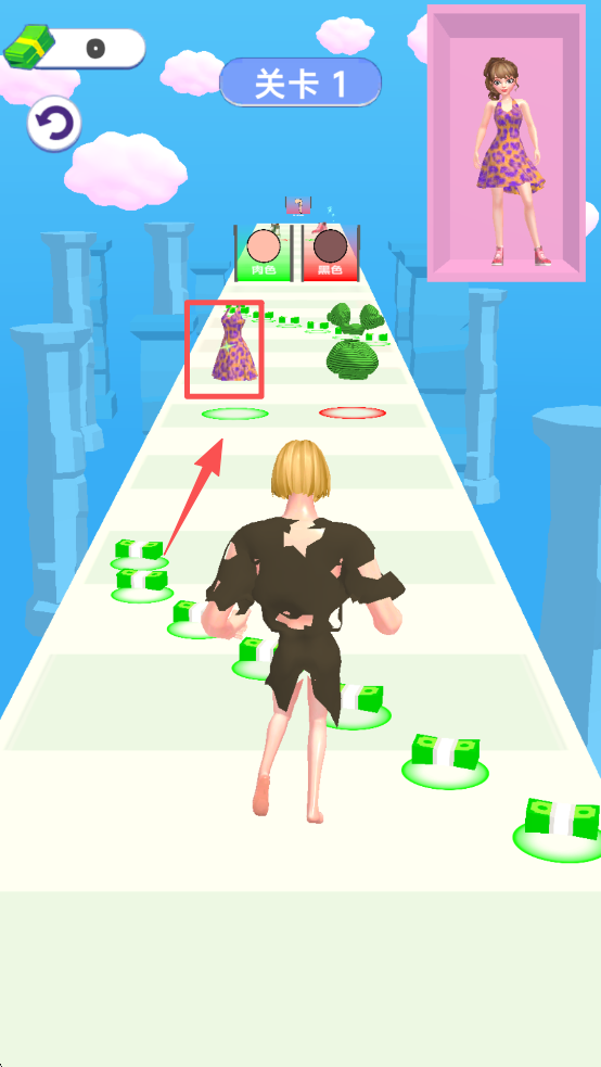 2、通过跑酷收集金币和服装,点击屏幕上的服装图标来更换角色装扮。