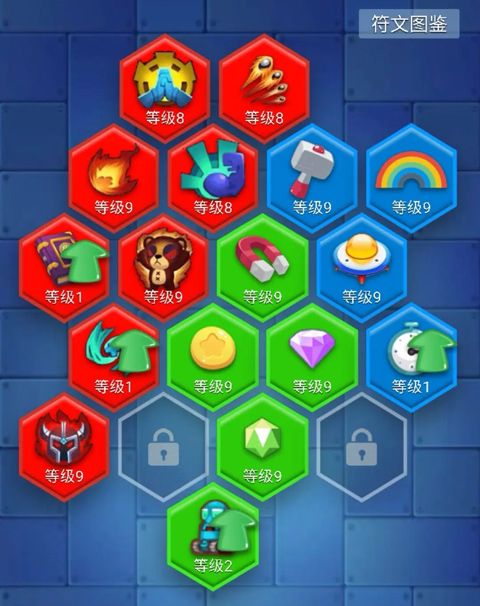 不同符文的最高级不一样,敏捷16级满级,自动打造、自动合成19级满级,彩虹25满级,其他绿色、蓝色30满级,红色除去敏捷外不封顶,无限升优先升级