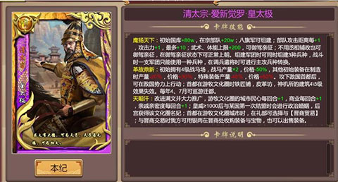 后宫玩法:皇太极的后宫技能可看作一个补偿机制,只要有天灾妃子就会机率介绍新的名妃进来。