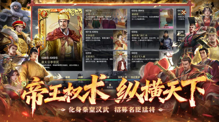 1、帝王权术,纵横天下:化身秦皇汉武,招募名臣猛将。