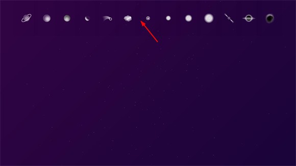 2、点击圆圈后有各种类型的星球可以选择,点击其中一个将其拖动到场景中就可以。