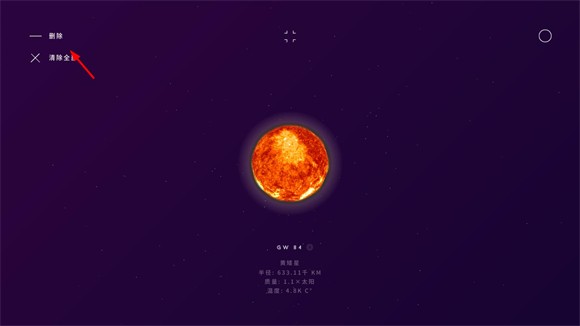 4、点击左上方的按钮可以清除或者删除当前星球。