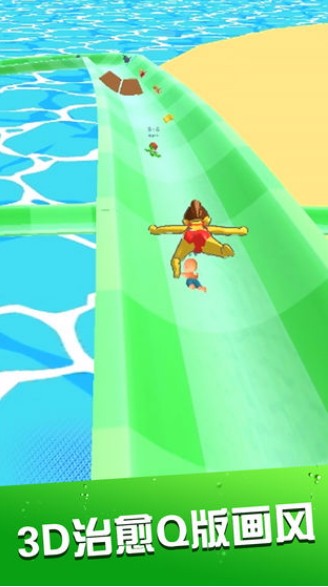 水上乐园滑梯竞速免费下载是一款以夏日水上乐园为背景的3D休闲竞速手游,游戏采用简约清新的卡通画风,玩家通过滑动屏幕控制角色在蜿蜒的滑道上加速、转向,搭配动态光影效果,完美复刻了真实水上乐园的彩虹滑道、螺旋隧道等标志性场景,为玩家带来沉浸式的清凉体验。