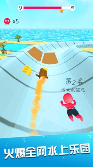 这款游戏以水上公园为主题,超多玩家在线竞技对决,通过管道划水的方式进行前进,灵巧的避过各种障碍物,保证自己能够快速冲刺到第一名吧,与全世界的玩家竞技挑战漫长的水滑道,淘汰对手。