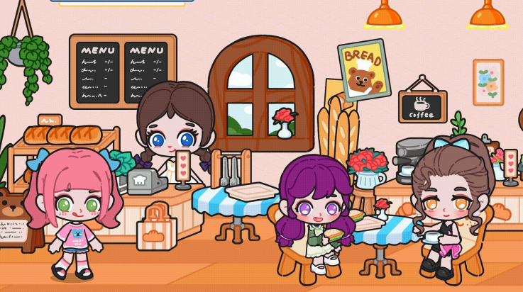 4、进入面包店,体验轻松休闲的生活氛围,与角色互动享受美食。