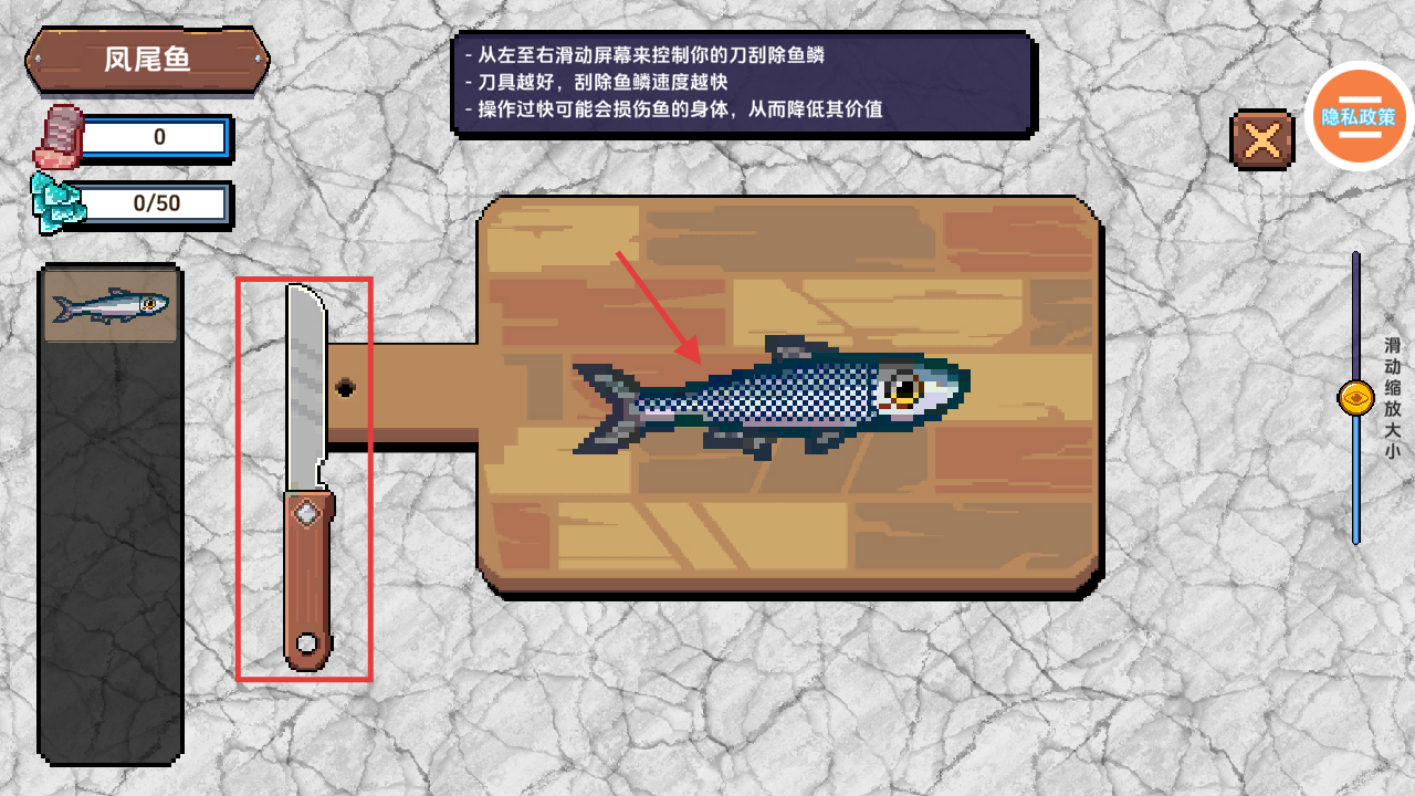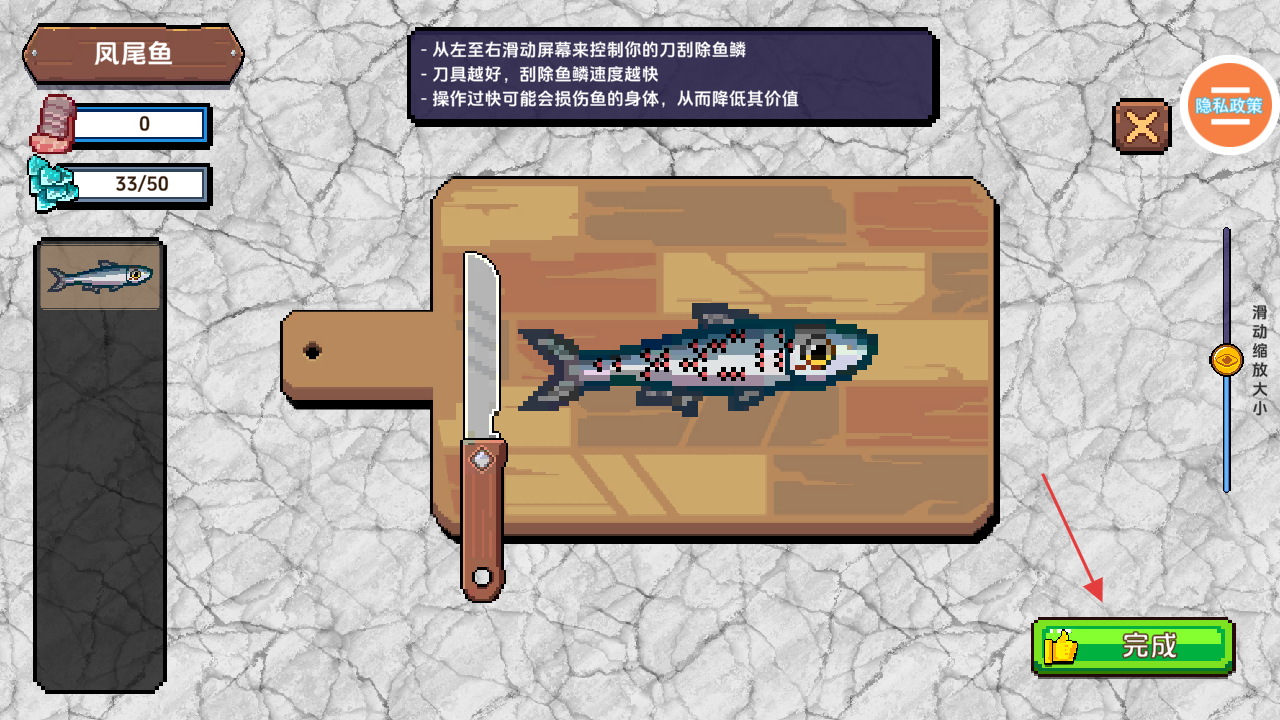 3、钓上鱼后,使用道具刮除鱼鳞。