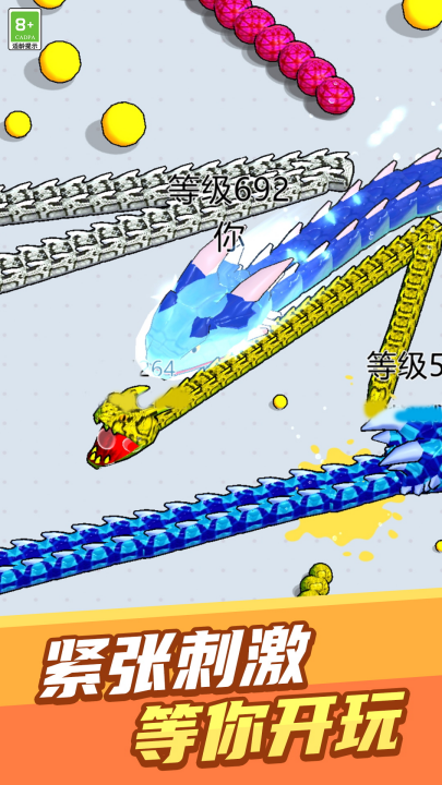 4、长按加速键,凭借巧妙的走位,使蛇身被他人撞上。无论是U型包围、小蛇狂奔,还是联盟围堵,这些逗趣好玩的策略战斗方式,都能助你瞬间实现逆袭。