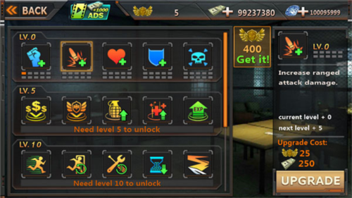 游戏内技能多样,每隔5级都有5个技能,每个技能都可以通过花费一定物品资源来升级,提升足够多的技能让你变的更加强大