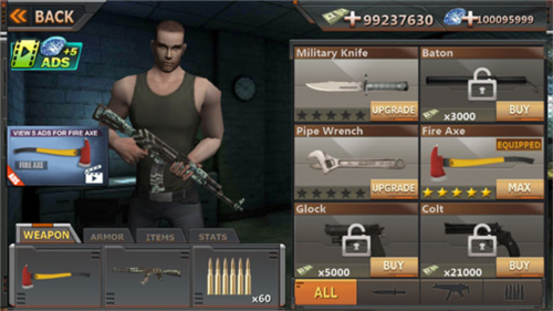 还有多种武器等你解锁:手枪、电棍、斧头、高威力枪械等等,强力武器等你来拿