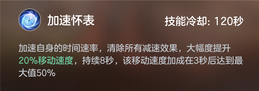 加速怀表配合岚的技能效果,可以让他化身为战场主宰,在敌人内部来去自如。