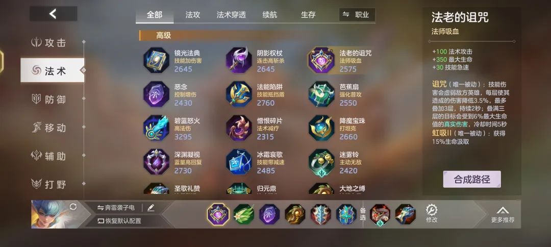看到这里,你也可以发现,这俩流派的技能是有一定的重合度,在诸葛亮的高转技能的,你可以进行前期用法师流打优势,后期用法术射手流打输出,所以这就需要装备上出法的讲究了。