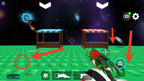 2、通过左侧区域滑动控制角色移动,右侧按键发动攻击、跳跃或启动火箭飞行器(如有),应对从不同方向袭来的怪物波次。