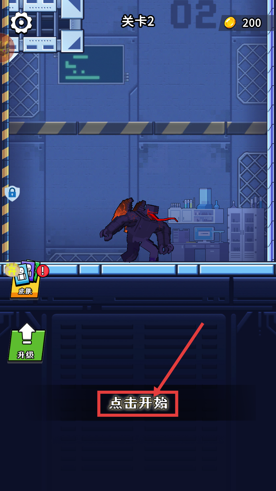 1、在【关卡2】界面,点击【点击开始】按钮,进入关卡挑战,准备对抗敌人。