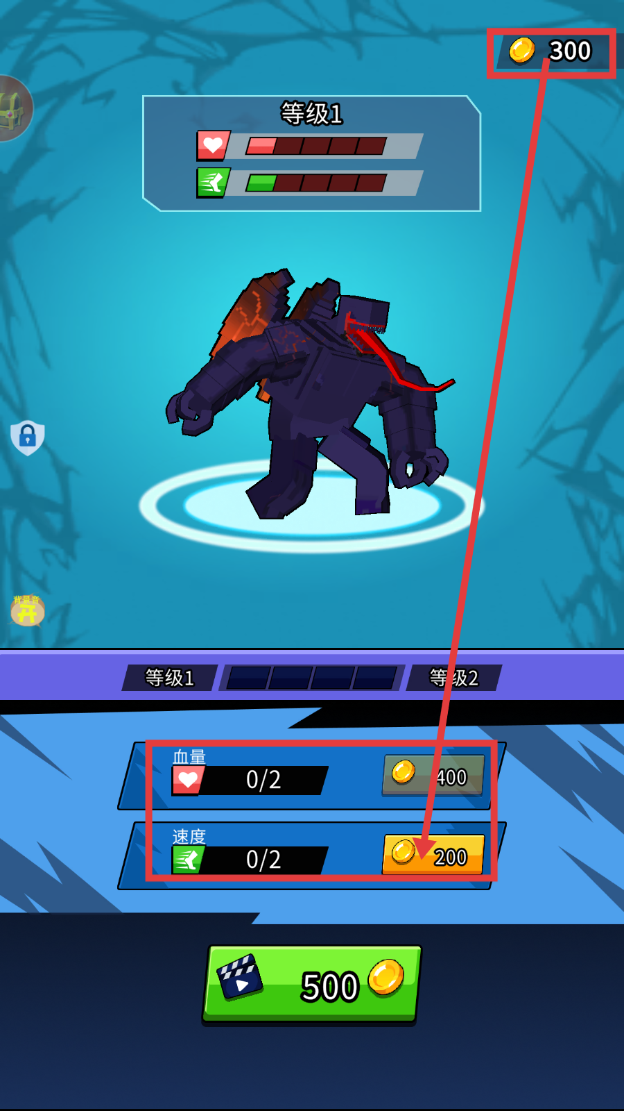 4、使用获得的金币,在升级界面提升角色【速度】等属性,增强角色战斗能力。