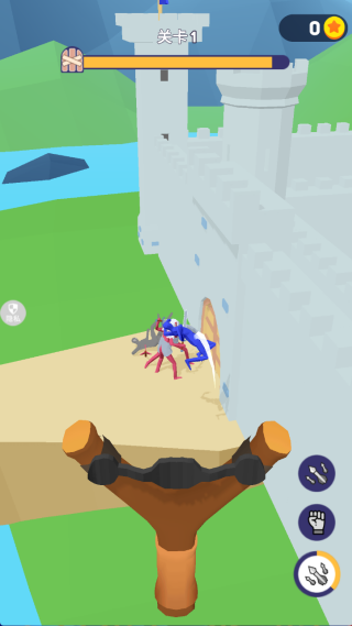 1、在关卡中,通过点击屏幕滑动,调整弹弓的角度以及力度,松开手即可射击。
