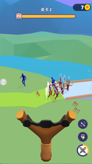 1、整体操作玩法简单,消灭敌人获得金币奖励,通过升级弹弓和士兵等级来提高你自己的力量。
