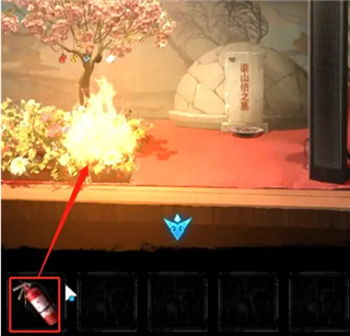 1、点击右下角座椅脸谱得到消防栓的密码提示7153,打开得到灭火器;