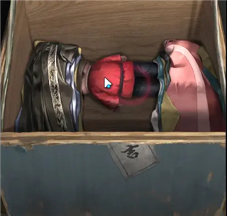 10、拉开中间布帘,可以看到乐器,拿起小棒子,按照报纸上的提示按顺序敲击即可。成功后,衣箱打开,得到布偶;