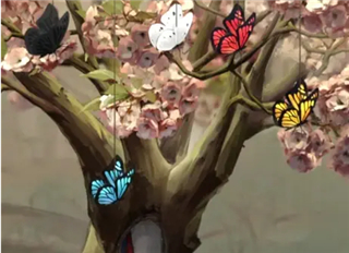 2、回到舞台区,灭火器灭火,灭火后,得到油伞和蝴蝶;