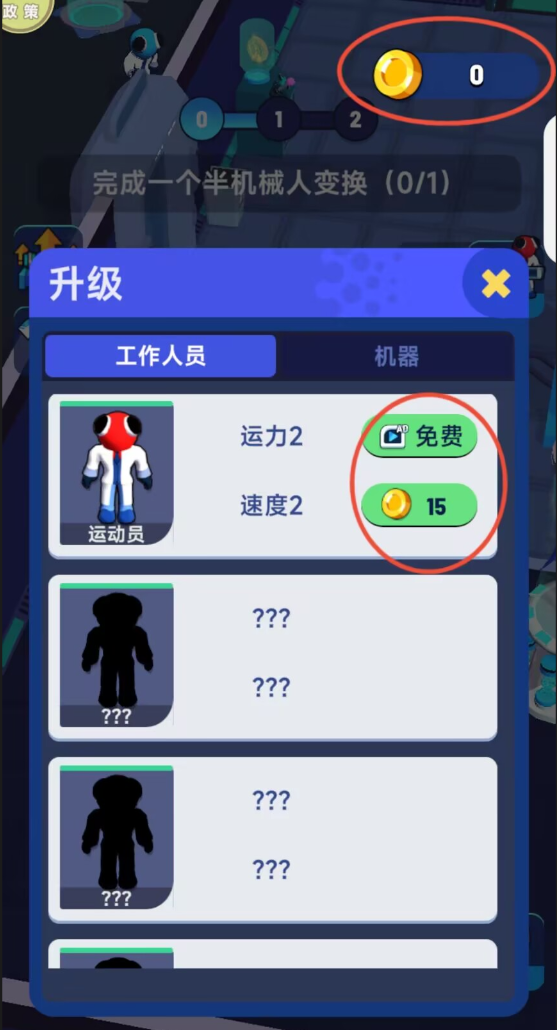 界面右上方会实时显示当前的资金数额,点击扩展菜单就能进入强化界面,在这里可以使用金币来提升设备和雇员的工作效能。