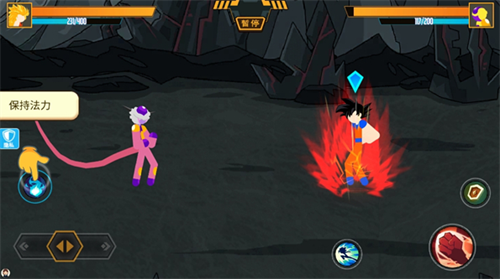 2、游戏中通过左右方向滑块即可控制角色进行移动,玩家需要根据战斗需求接近亦或是远离对手;