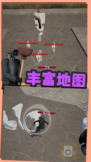 嚣张的马桶人游戏v1.0.2 安卓版嚣张的马桶人游戏是一款充满趣味的动作冒险游戏,玩家将扮演造型夸张的马桶人,在城市街道中与监控人展开激烈对抗。利用地形制定攻防策略,搭配多样技能与主题装扮,体验刺激畅快的街头战斗,考验你的操作与即时决策能力。