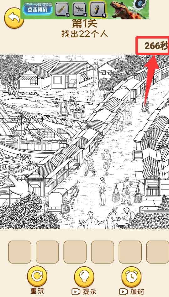 2、进入游戏这关任务是找出22个人就可以通关了。