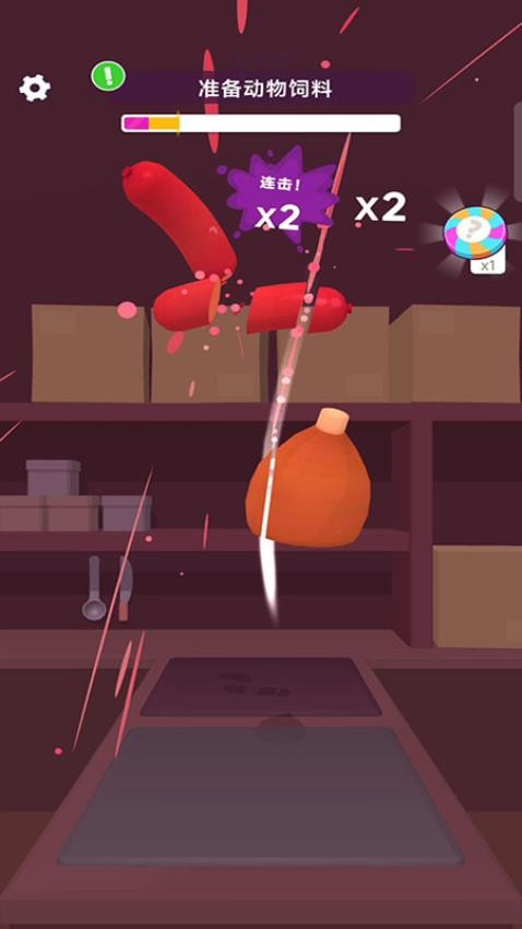 3、切香肠、火鸡,借连击提效率,完成【准备动物饲料】,供给动物。