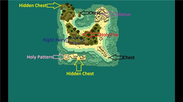 3、我们来到宝箱这里,发现被草丛围住了,这时候需要去制作一把工具来破坏草丛。