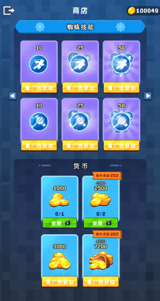 5、我们还可以进入到商店中购买技能,金币可以在你完成各个任务之后,系统会奖励给你的。