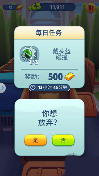 4.小编注意到,积累分数任务要求玩家必须在一次跑酷过程中达成,若获得规定分数前跑酷失败,玩家就必须重头再来。除非你对自己的手速有足够自信,否则切勿为了收集金条而在达成目标前进行高风险操作;