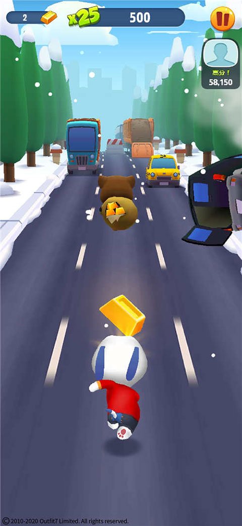 除磁铁之外,“双倍金条”也是增加玩家金条收益的一大神器。拾取该道具后,玩家收集的金条数量会翻倍,相同的操作带来200%的收益,这种感觉想想就很刺激。然而,获得双倍金条加成的小伙伴必须格外冷静,收益翻倍很有可能让人选择风险更大、金条更多的路线,如果你身处“憨憨狗高速公路”这样遍地老司机、一言不合就飙车的关卡,首先应该考虑的是不被撞倒而非追金,毕竟只有角色在存活状态时,道具才能起作用。
