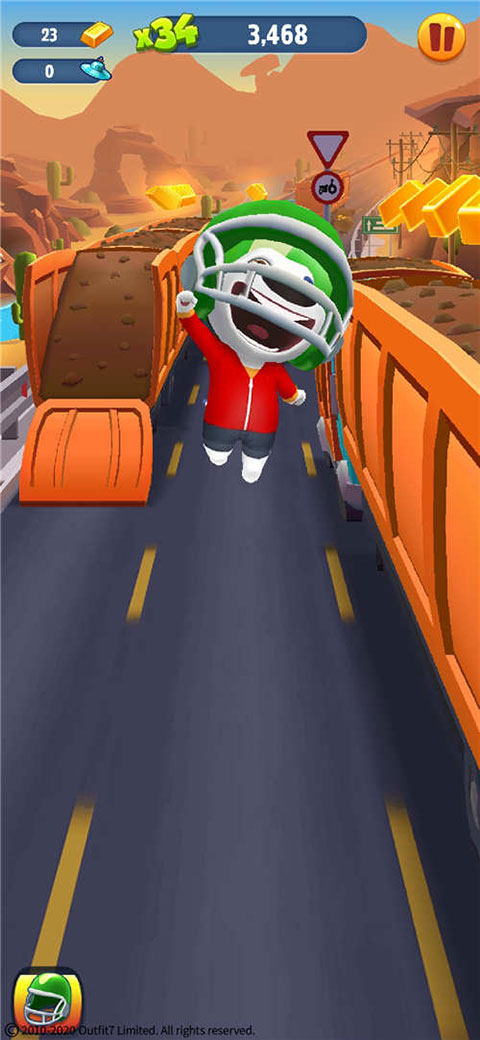 用简单粗暴来形容“头盔”再合适不过了,该道具虽然无法帮助玩家获得额外的金条,却能有效延长玩家的跑酷存活时间,进而使其获取更多收益。处于头盔保护状态中的玩家在遇见路障、汽车甚至大巴时不必躲闪,直接迎头一撞便能轻松化解。当然,正所谓牛逼也要分场合,头盔无法全程为玩家提供主角光环加成,如果你发现自己的头盔进入闪烁状态,那就得分外小心了。