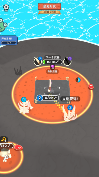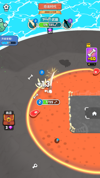 1、点击屏幕滑动控制你的武器移动,在不同的时代开启收集进化之旅。
