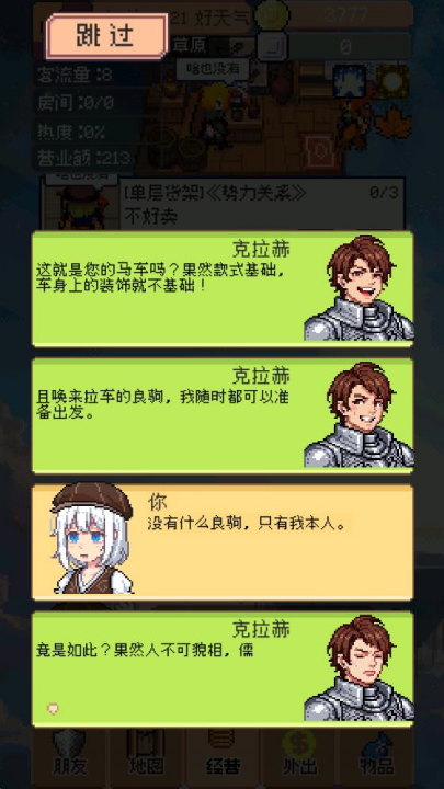 商旅马车游戏是一款模拟经营类养成游戏,游戏采用像素卡通风格打造。游戏内玩家将来到异世界扮演一名商人,在这里你可以体验各种不同的游戏玩法来赚取金币,十分有趣。对商旅马车游戏感兴趣的玩家不要错过,欢迎大家在本站下载游玩。