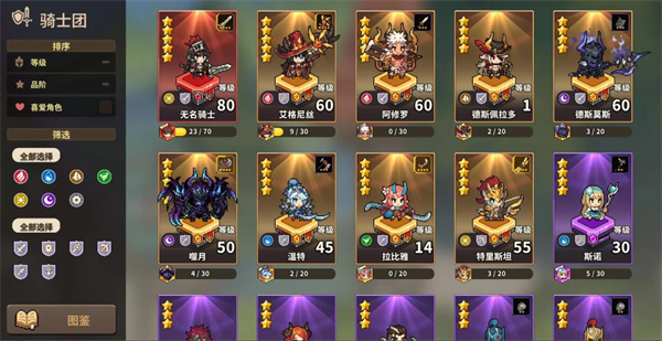 1、集结各属性、职业英雄,组建独一无二的骑士团。